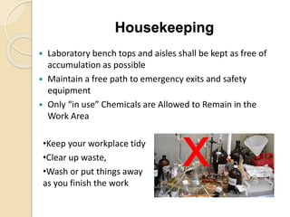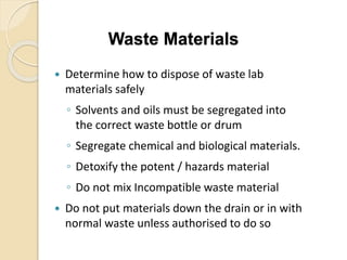 They should be disinfected. Up to 24 cash back The last chemical handling safety rule to keep in mind is to clean up when finished. A laboratory bench should always be kept free from a.