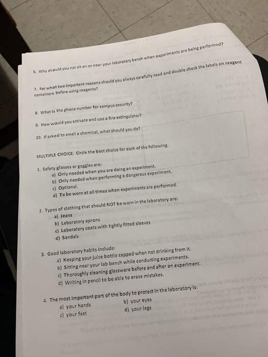 Solved 6 Why Should You Not Sit On Or Near Your Laboratory Chegg Com